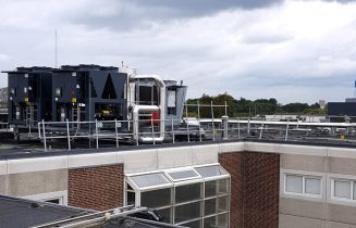 5 chiller Turbomiser raffreddati ad aria, con compressori centrifughi oil-free, pompe integrate e con pannello di controllo dell’alimentazione posto sul pannello frontale, con i relativi collegamenti idraulici per una sostituzione rapida e semplice