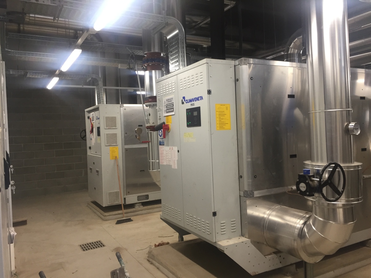 Per garantire il miglior comfort a questo grande spazio polifunzionale è quindi stato studiato un impianto customizzato, basato su 1 chiller a levitazione magnetica e 2 pompe di calore polivalenti, tutti a marchio Climaveneta e tutti gestiti da ClimaPRO. Il chiller, grazie ai compressori Turbocor a levitazione magnetica, consente di gestire il carico termico dal 10 al 100% in maniera dinamica e fluida, mantenendo le prestazioni energetiche della macchina. Grazie alla condensazione ad acqua, le prestazioni energetiche di questa unità risultano infatti molto performanti, soprattutto a carico parziale, quindi nel 90% del funzionamento della macchina.