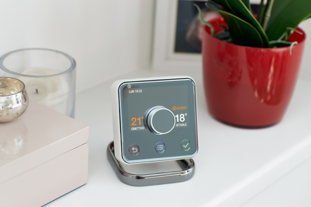 Il fantastico, intuitivo e pratico termostato smart può essere posizionato a piacere all’interno di ogni casa. Permette di verificare se il riscaldamento è spento quando si è fuori, di accenderlo a distanza e godere di una doccia calda quando si torna dalla palestra, oppure di cambiare le impostazioni quando viene a far visita un ospite freddoloso all’ultimo minuto.