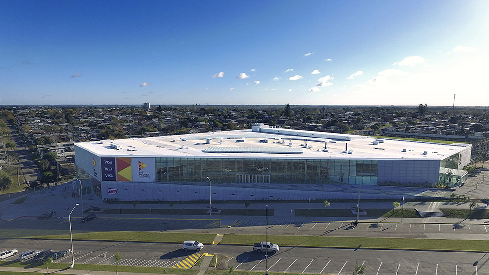 La città di Las Piedras, nel dipartimento di Canelones, è un centro urbano in rapida crescita negli ultimi anni, in seguito al forte sviluppo metropolitano della capitale Montevideo. In quest’area, prettamente rurale e caratterizzata da piccoli esercizi commerciali, mancava un centro di aggregazione in grado di offrire non solo negozi ma anche aree di ristorazione e servizi ricreativi per la cittadinanza. Per servire quindi questo crescente bacino di utenti, è nato il centro commerciale Las Piedras Shopping: 38.000 m2 totali con 100 negozi, 5 sale cinema, 1 ipermercato, una grande food court con 12 punti di ristoro e una capienza di 600 persone. L’edificio si sviluppa su tre livelli, il primo interrato e dedicato ai parcheggi, gli altri due alle attività commerciali e ricreative. Il centro si affaccia con grandi vetrate sul Parco Artigas, inserendosi in maniera armoniosa nell’ambiente circostante.
