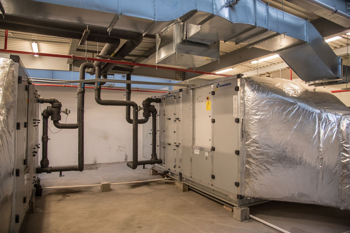 Per ottimizzare le performance energetiche dell’edificio, è stato inoltre predisposto un sistema di free-cooling in grado di sfruttare le temperature favorevoli dell’aria esterna a supporto dell’impianto di climatizzazione. Il trattamento dell’aria è affidato a 10 centrali trattamento aria WIZARD-TA-7500 CA, con una portata d’aria totale di 244.035 m3/h.